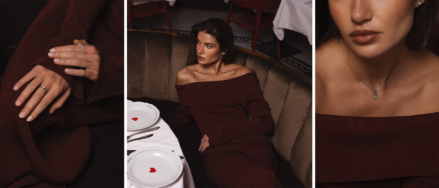The Valentine’s Drop ist eine minimalistische Hommage an die Liebe und interpretiert das Herzsymbol auf moderne, klare Weise. Inspiriert von der Eleganz eines Date-Abends in der Stadt umfasst die Kollektion Schmuck aus vergoldetem Material und Edelstahl - eine zeitlose Kombination aus Glanz und zurückhaltender Raffinesse. Jedes Piece wurde so entworfen, dass es sich persönlich, hochwertig und langlebig anfühlt, und trägt eine leise Romantik in sich, die weit über die Saison hinaus bleibt - für jede Art von Liebe.