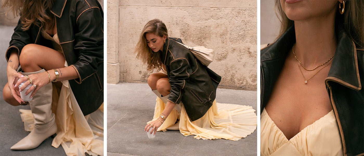 „Mein persönlicher Stil ist sehr vielfältig, genau wie bei vielen anderen. An einem Tag möchte ich skandinavischen Minimalismus, am nächsten mehr bohemian Romantik. Doch egal, wie sehr ich mit meiner Kleidung experimentiere, mein Schmuck bleibt immer derselbe – Schmuck, den ich nie ablege.“