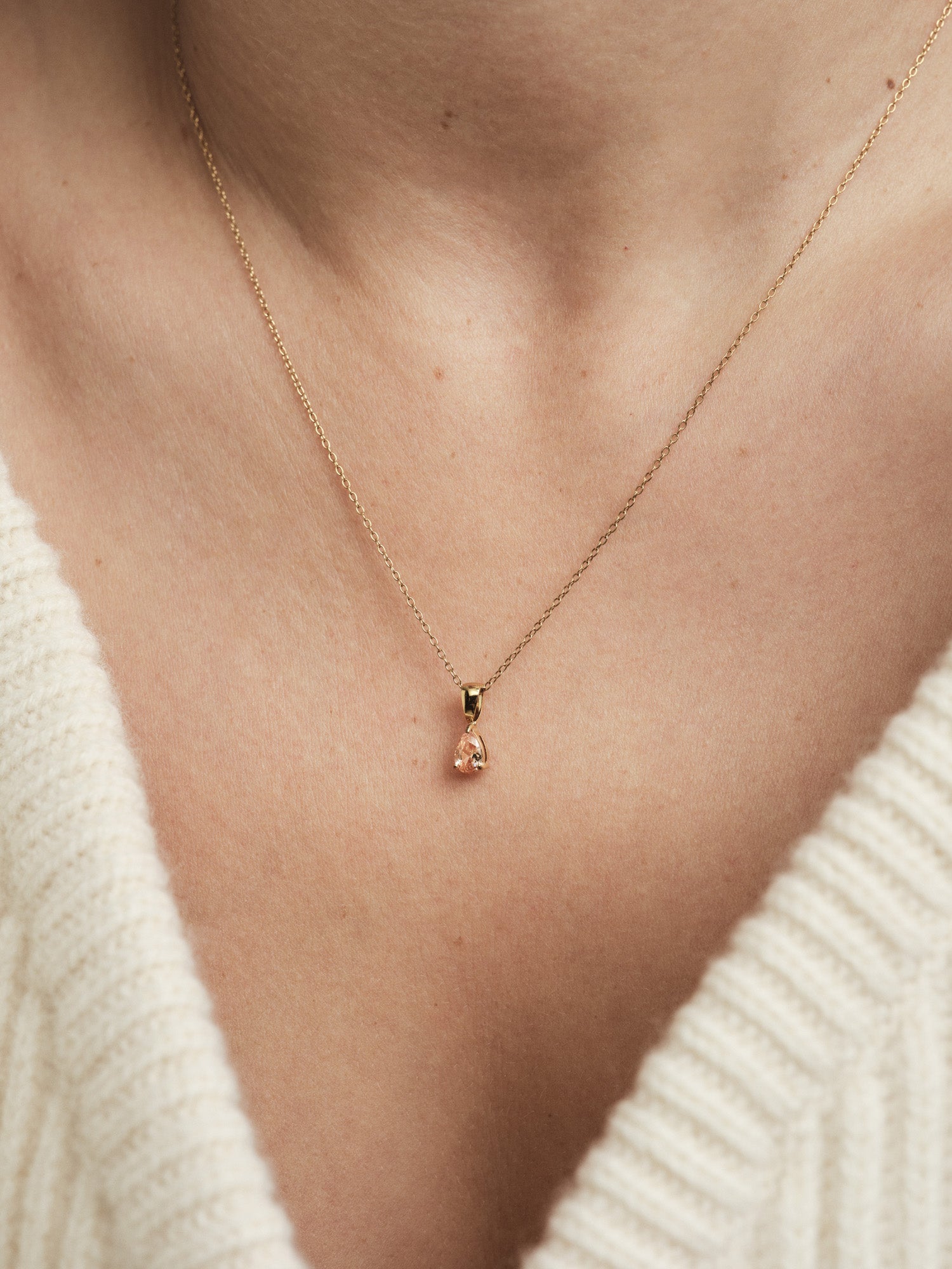 Die Belle Champagne Necklace ist eine minimalistische Halskette mit einem tropfenförmigen, champagnerfarbenen Stein, der an einer feinen Kette befestigt ist. Gefertigt aus Edelstahl mit 18K-Gold-PVD-Beschichtung, ist sie sowohl langlebig als auch wasserfest – und bewahrt dauerhaft ihren Glanz und ihre Farbe.