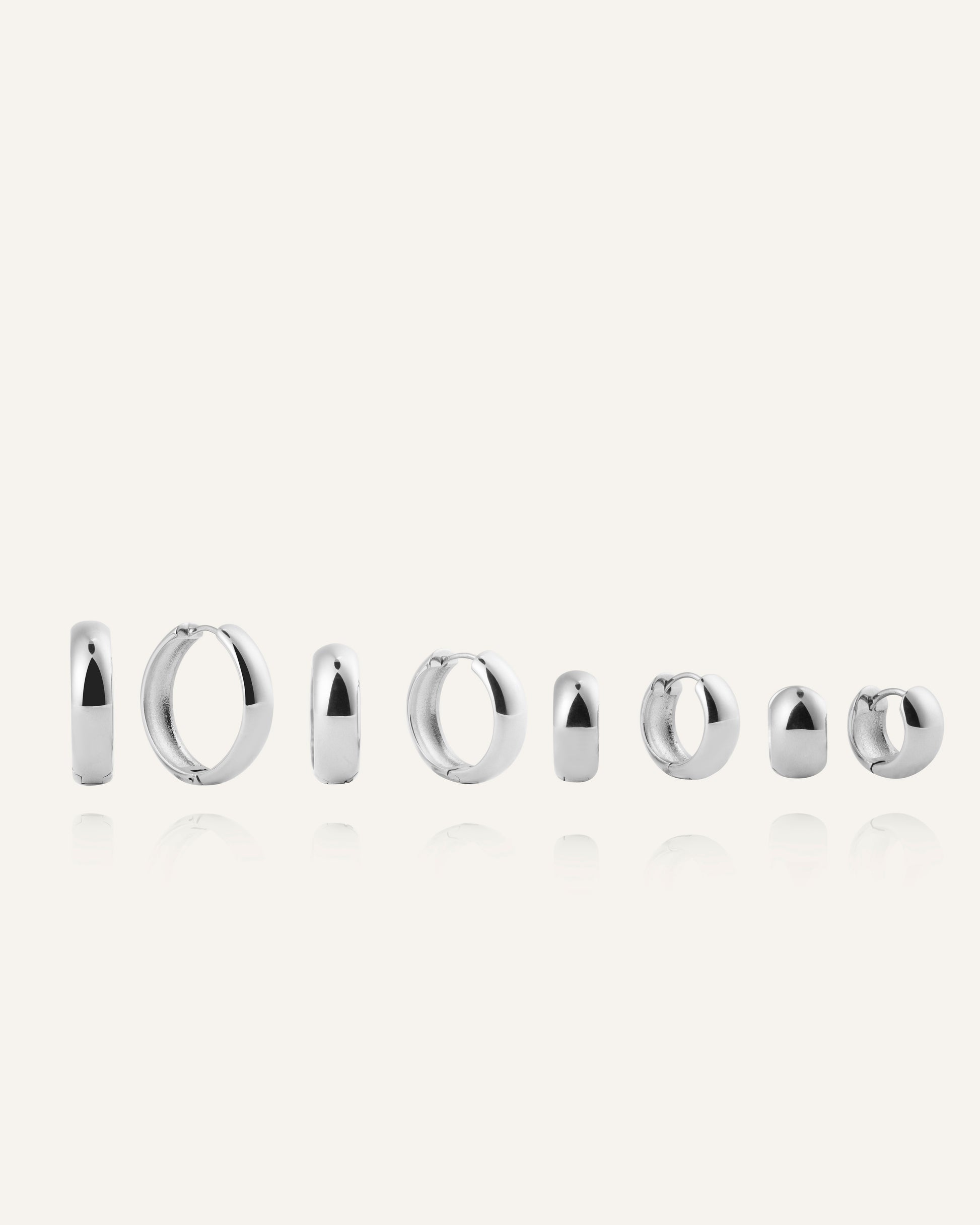 Brave Hoops überzeugen mit einem sanft gewölbten, kompakten Design, das nah am Ohr anliegt. Aus Edelstahl mit silberfarbenem Finish gefertigt, sorgen sie für einen klaren Look vom Tag bis in die Nacht. Die polierte Oberfläche verleiht hellen Glanz und hält dem täglichen Tragen stand. Trage sie solo für einen reduzierten Look oder kombiniere sie mit kleineren Steckern für eine persönliche Note.