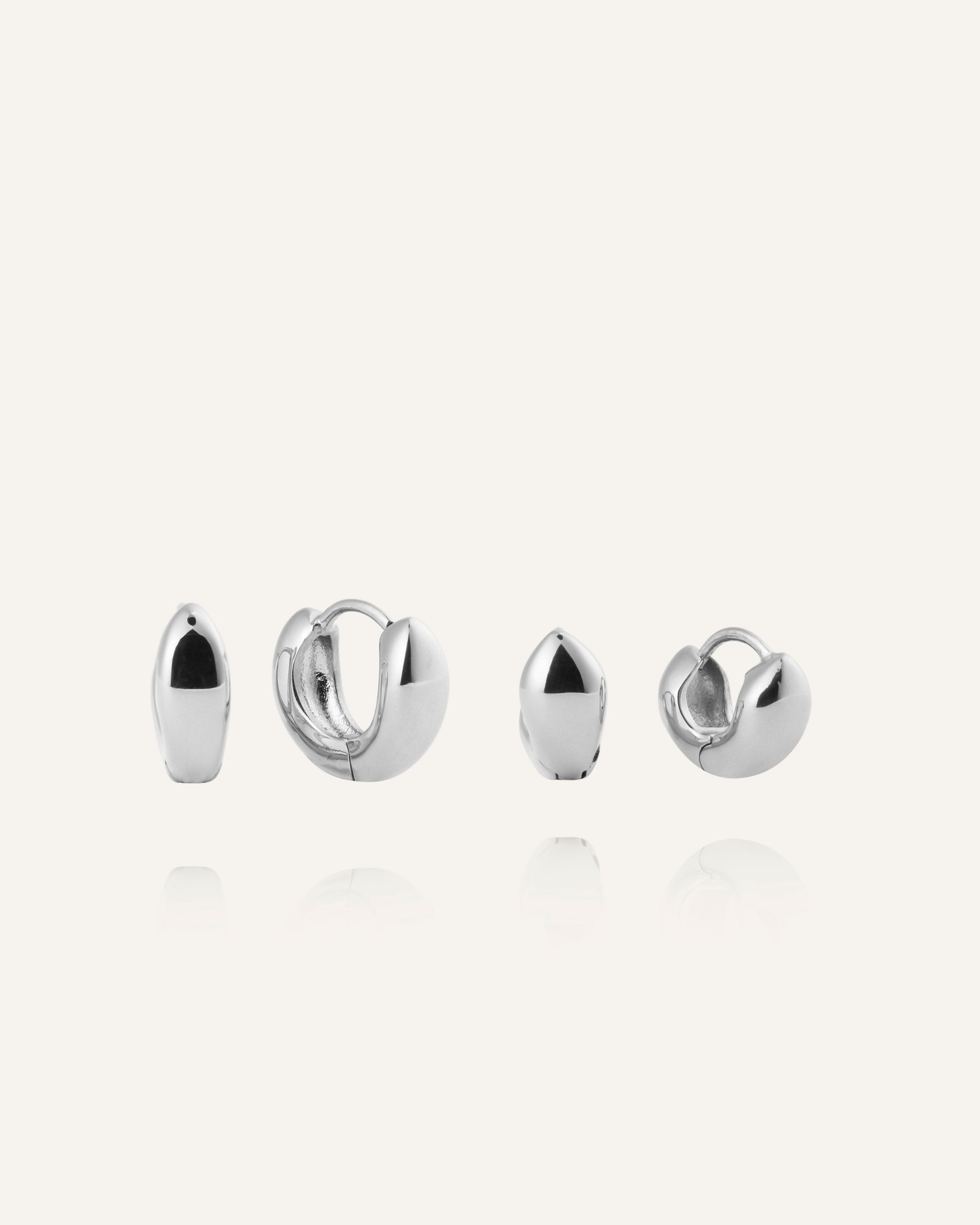Bulky Huggies in silberfarbener Ausführung verfügen über eine polierte, gewölbte Form, die einen klaren, edlen Glanz verleiht. Die kompakte Größe sorgt für einen modernen Look, der sowohl zu einfachen Basics als auch zu eleganteren Outfits passt. Perfekt solo getragen oder in Kombination mit anderen Ohrringen.