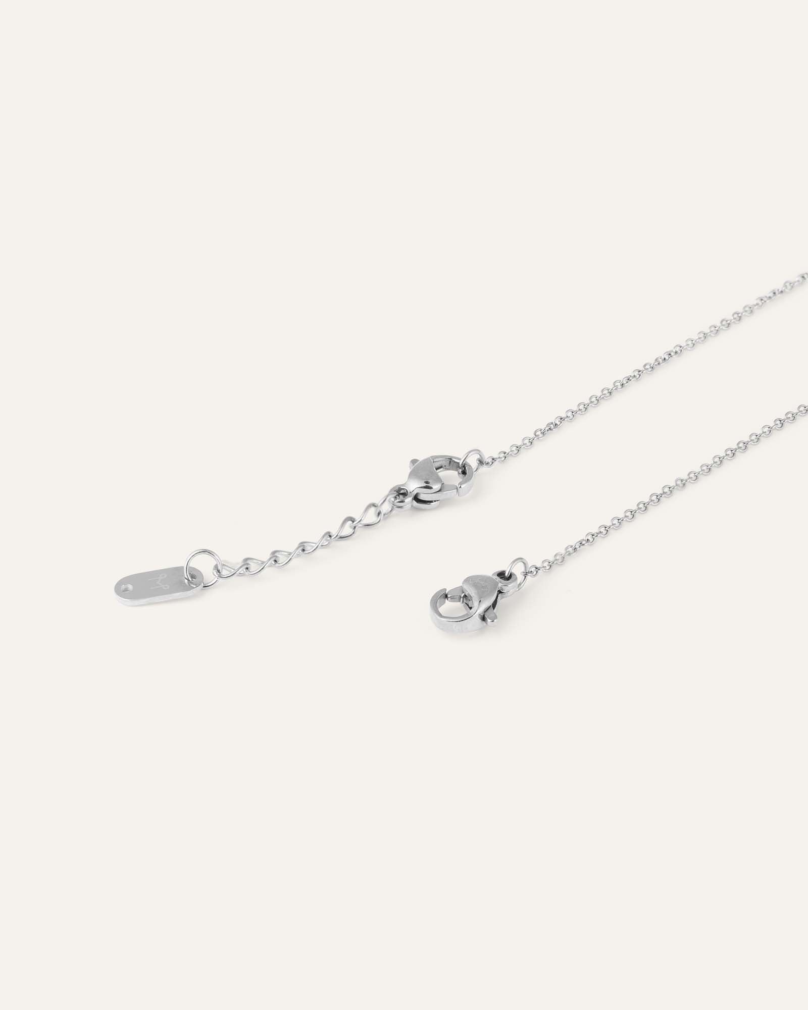 Ein schimmernder Tropfen skandinavischer Klarheit – polierter Edelstahl mit weißer Zirkonia, die nah an der Haut ruht. Von Natur aus wasserfest.