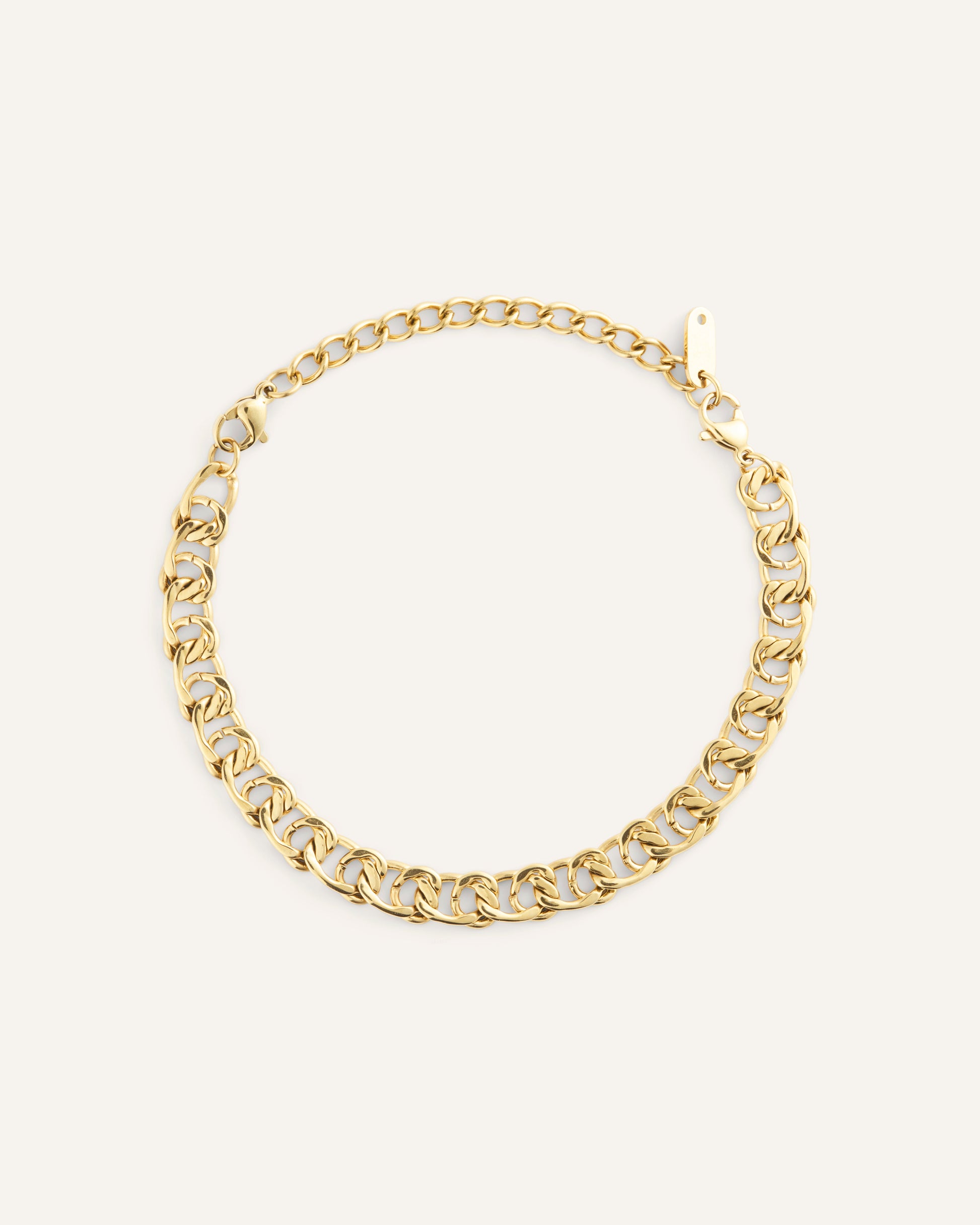 Infinity Bracelet ist ein klassisches Armband, dessen Glieder flach anliegen und so einen klaren, bequemen Sitz bieten. Trage es solo oder kombiniere es mit einer Uhr und weiteren Armbändern. Gefertigt aus Edelstahl mit 18K goldfarbener PVD-Beschichtung – robust und wasserbeständig, damit Farbe und Glanz lange erhalten bleiben. Die Verlängerungskette kann für eine individuelle Passform einfach entfernt werden.