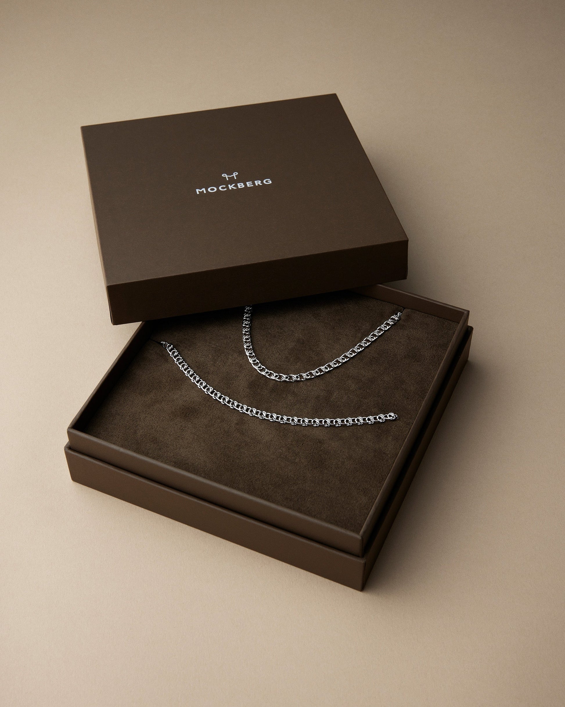 Shine in two pieces — a set that frames wrist and neckline with the same clean curb-chain look. Wear together for a defined, harmonious impression or separately when you want to keep it subtle. Durable, water-resistant, and easy to style — a sure choice from day to night.