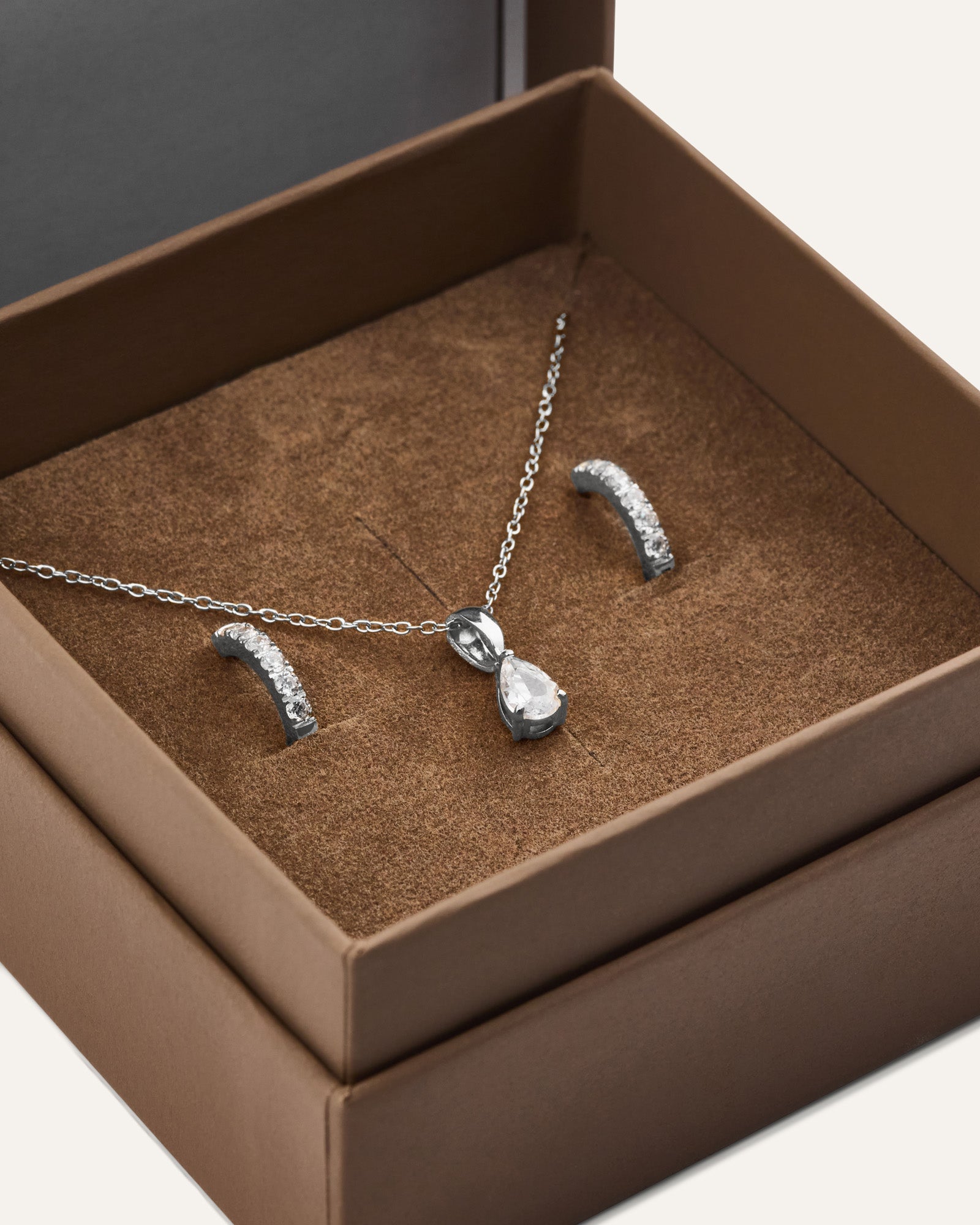 Ein elegantes Set mit einer Halskette und unseren meistverkauften Ohrringen. Entworfen für einen zeitlosen, klassischen Look. Das perfekte Geschenk für einen lieben Menschen – oder für dich selbst.