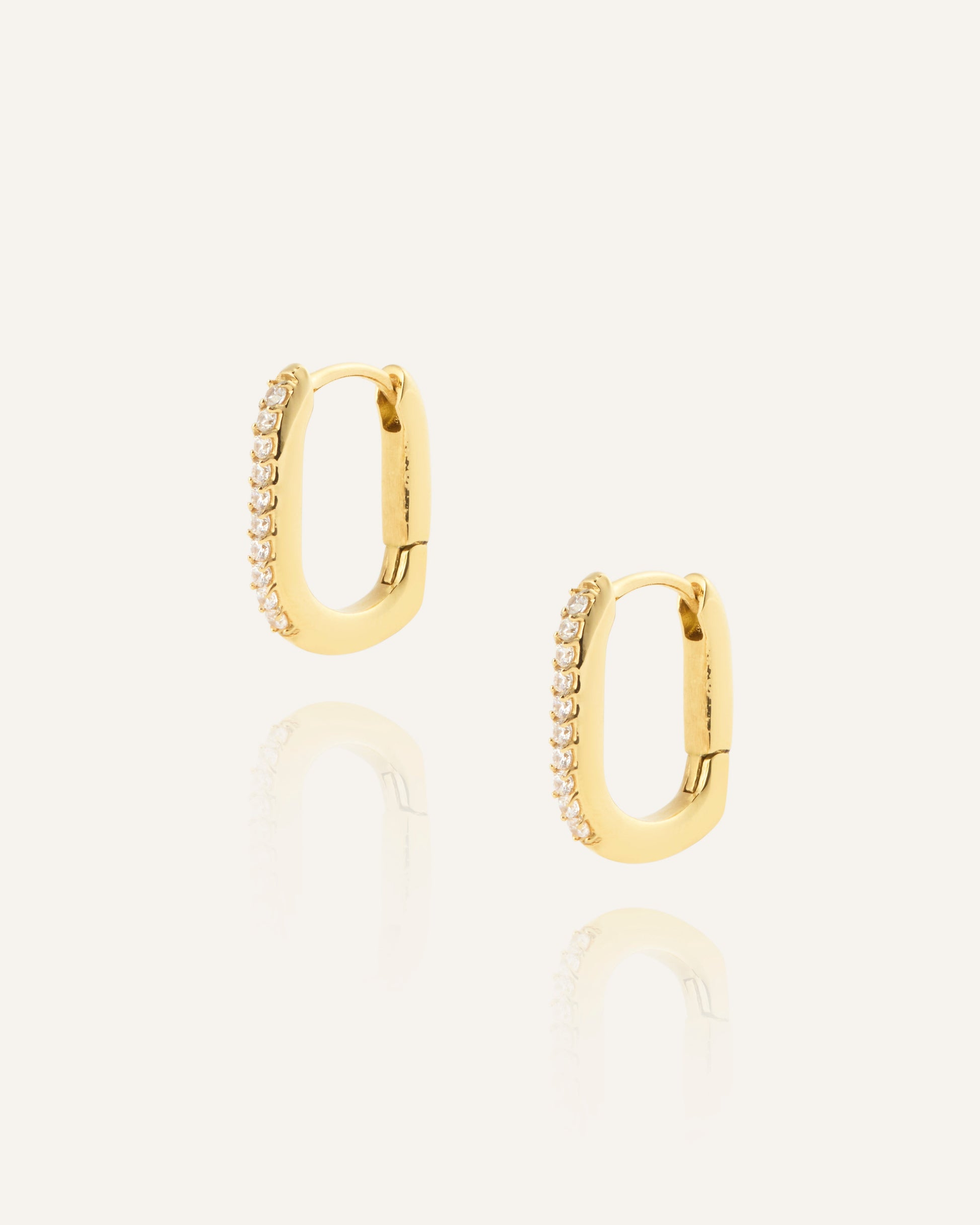 Sparkle U-Hoops schimmern in einem Goldton. Die schlanke U-Form ist mit weißen Zirkonia besetzt, die bei jeder Bewegung das Licht einfangen. Leicht zu tragen und einfach zu stylen – von morgens bis abends.