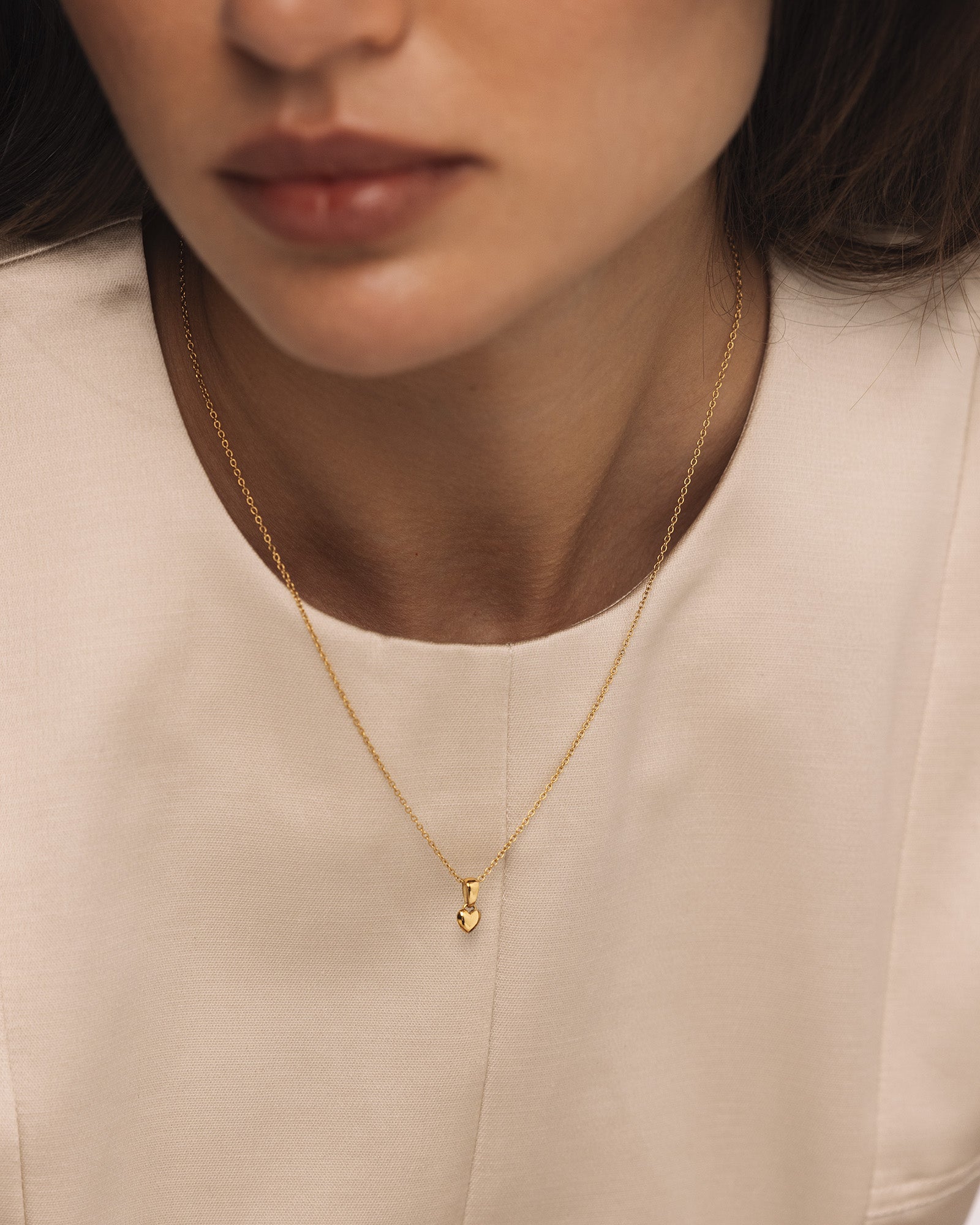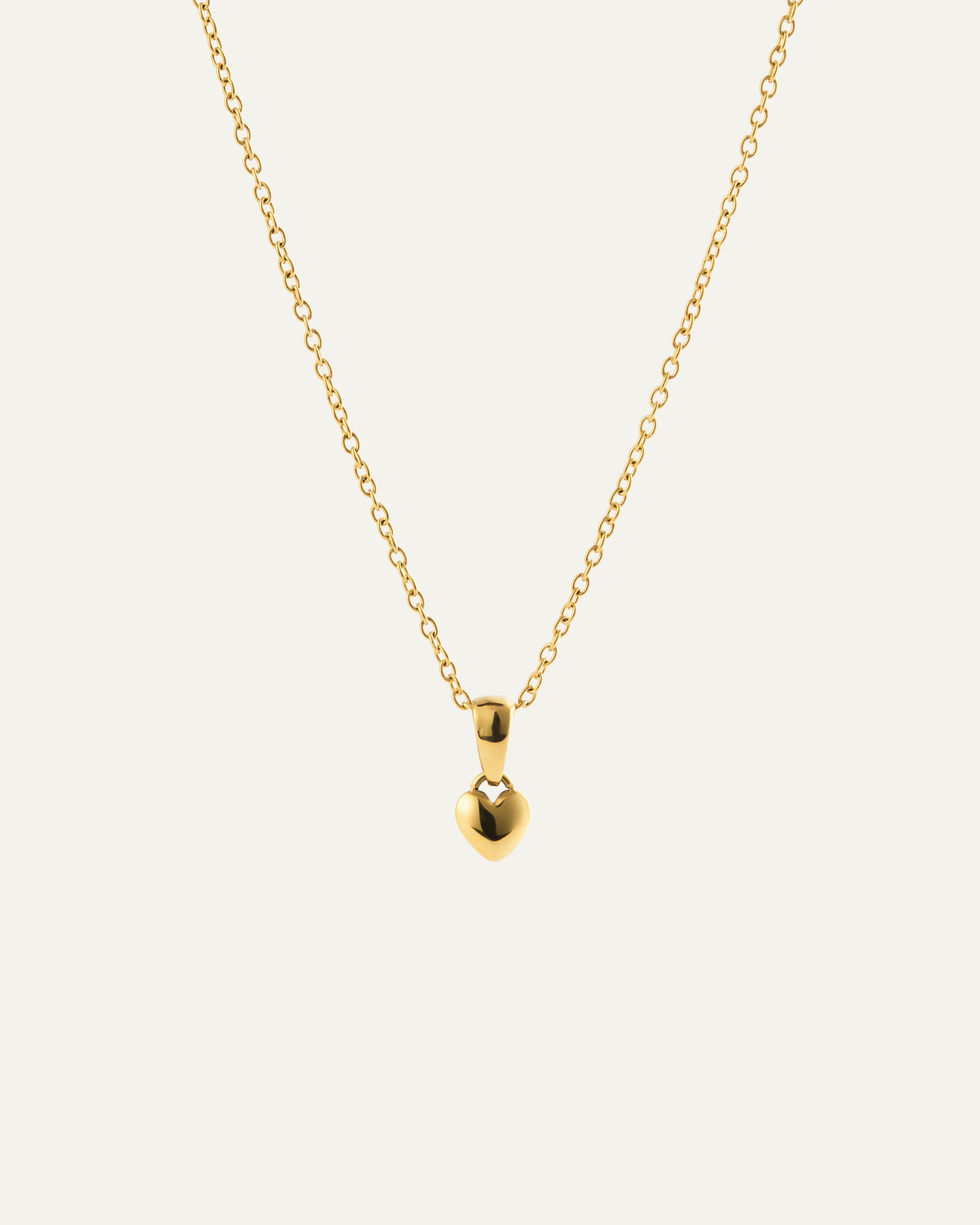 Eine zarte, goldbeschichtete Halskette mit einem kleinen Herzanhänger. Ihr klares, modernes Design macht sie zu einem zeitlosen Symbol der Liebe – perfekt für elegante Alltagslooks.
