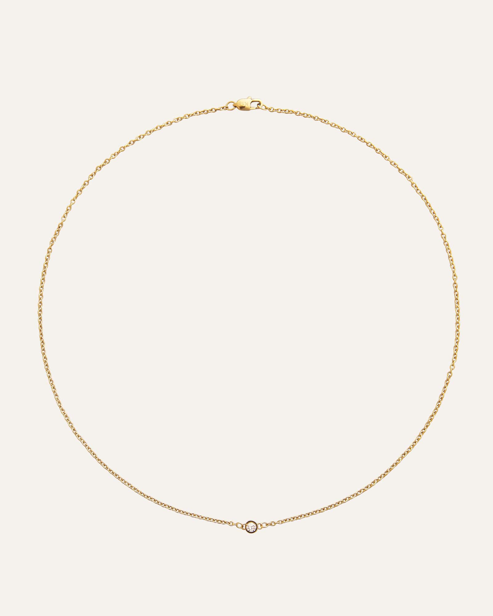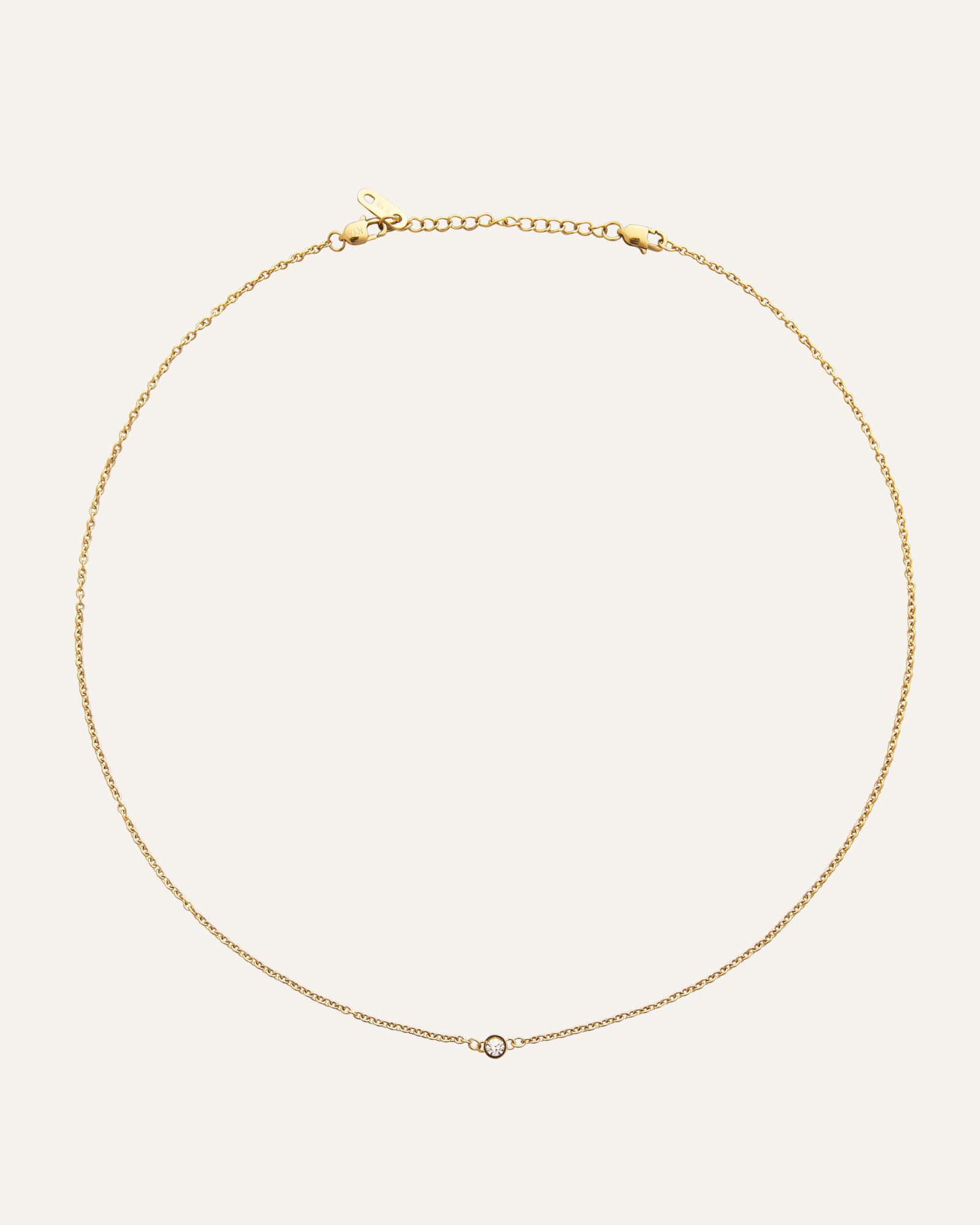 Eine minimalistische Halskette mit einer feinen, klassischen Kette und einem dezenten runden Stein. Gefertigt aus Edelstahl mit 18K-Gold-PVD-Beschichtung, ist sie sowohl langlebig als auch wasserfest – und bewahrt dauerhaft ihren Glanz und ihre Farbe. Die Verlängerungskette lässt sich bei Bedarf ganz einfach entfernen, um die Passform individuell anzupassen.