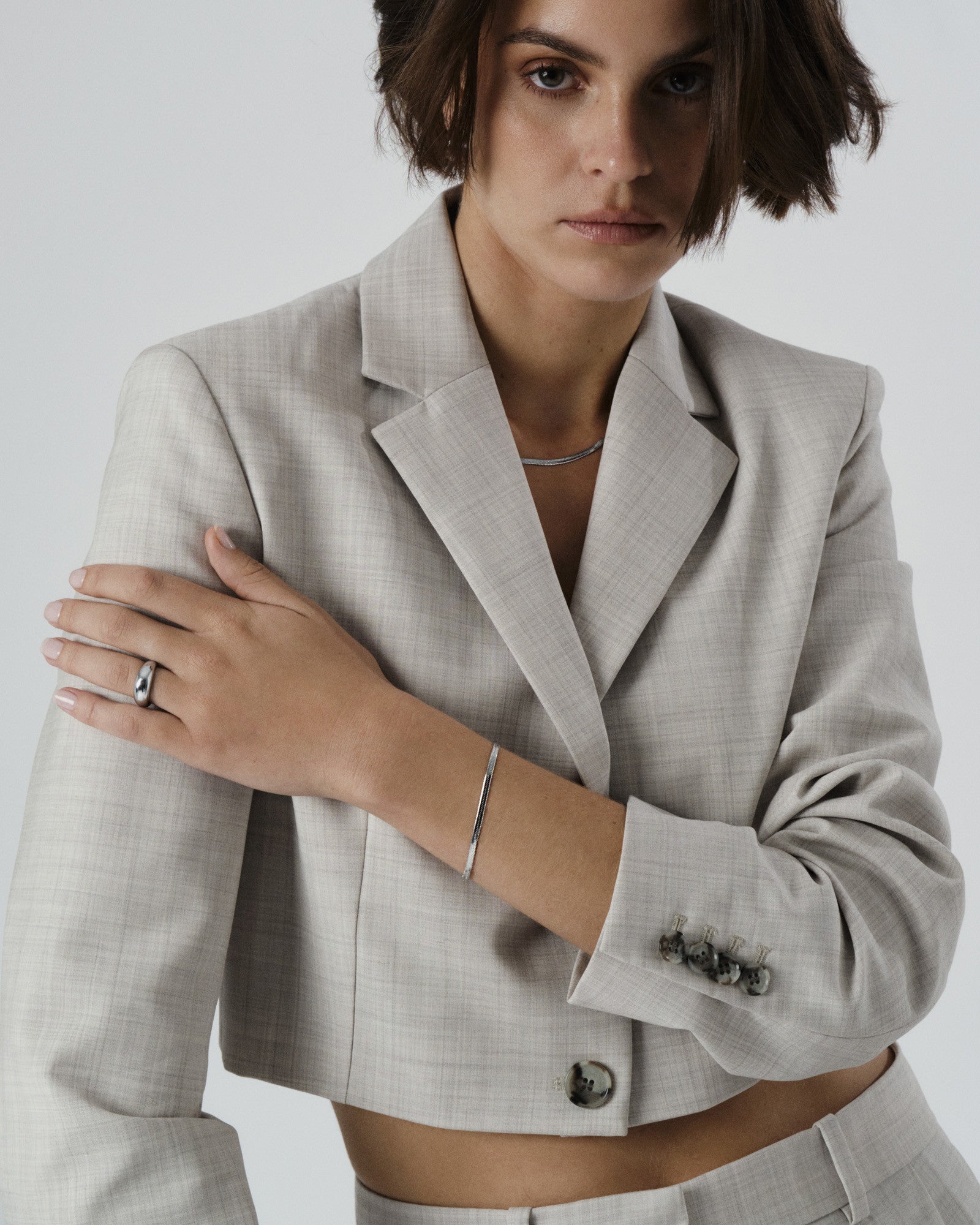 Cool shimmer in a sleek, flexible chain. Thin Snake in silver-tone frames wrist and neckline with a clear, timeless look — wear as a set or separately. Comfortable, easy to style, and made for everyday wear.