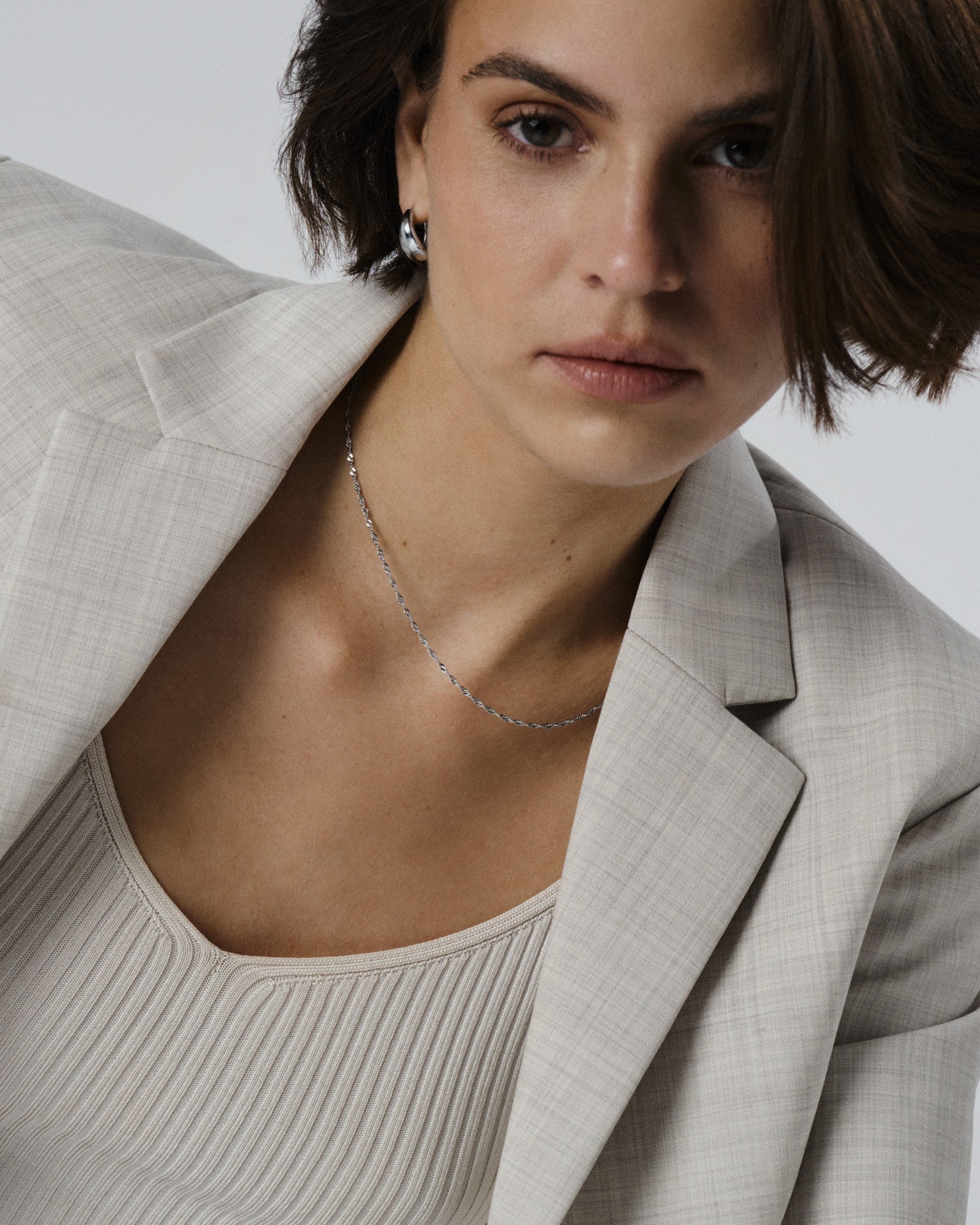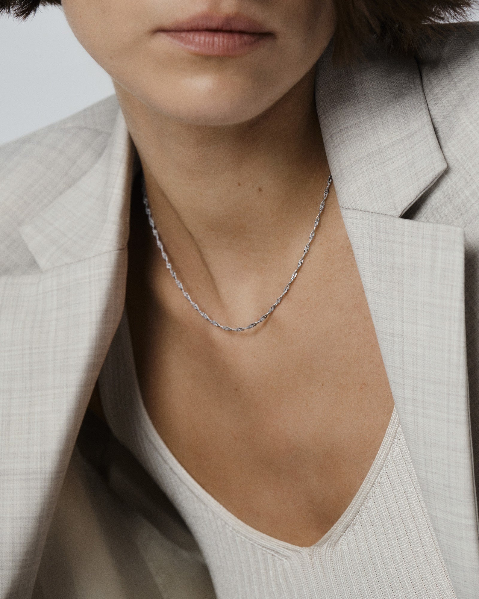 Die Twirl Necklace ist eine Halskette mit einer feinen, gedrehten Kette – perfekt, um sie einzeln zu tragen oder mit anderen Ketten zu kombinieren. Gefertigt aus Edelstahl mit PVD-Beschichtung, ist sie langlebig und wasserfest – und bewahrt dauerhaft ihren Glanz und ihre Farbe. Die Verlängerungskette lässt sich bei Bedarf ganz einfach entfernen, um die Passform individuell anzupassen.
